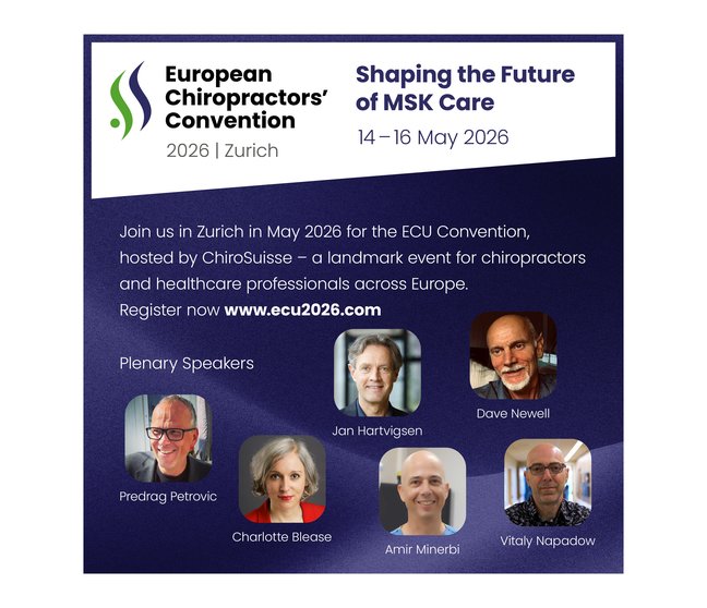 ChiroSuisse et l’European Chiropractors’ Union (ECU) se réjouissent de vous accueillir au congrès ECU2026 !